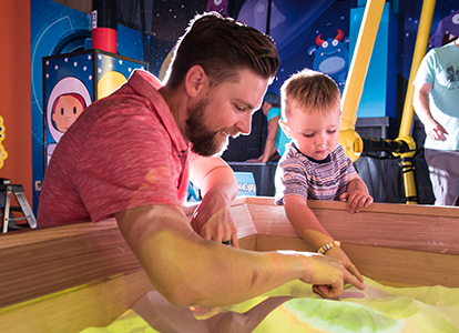 Unlock your creativity and let your ideas soar in the Imagination Lab, where the only limit is your imagination! Get a playful, behind-the-scenes look at how a word gets added into the dictionary in Word Up, stomp on invaders and save WonderWorks from an alien invasion in our Alien Stomp Dome, bring your art to life in our Touch and Go Display, explore the real work of a forensic scientist and so much more!